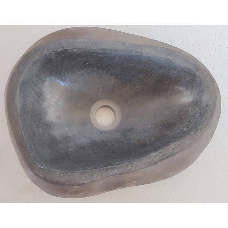 Lavabo que hay que poner de piedra natural, tallado en la masa de un guijarro de río.