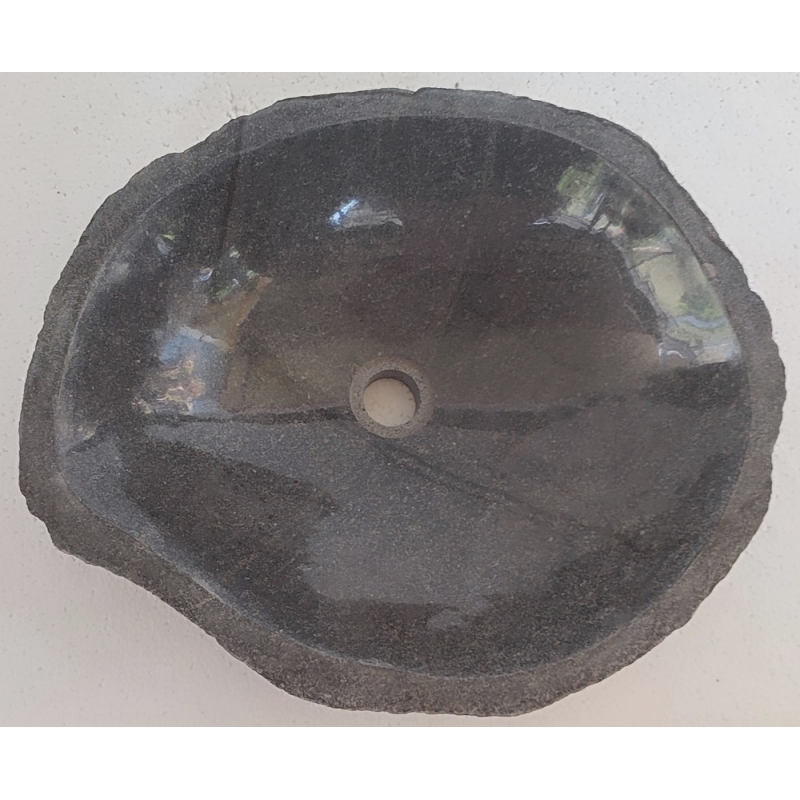 Lavabo que hay que poner de piedra natural, tallado en la masa de un guijarro de río.