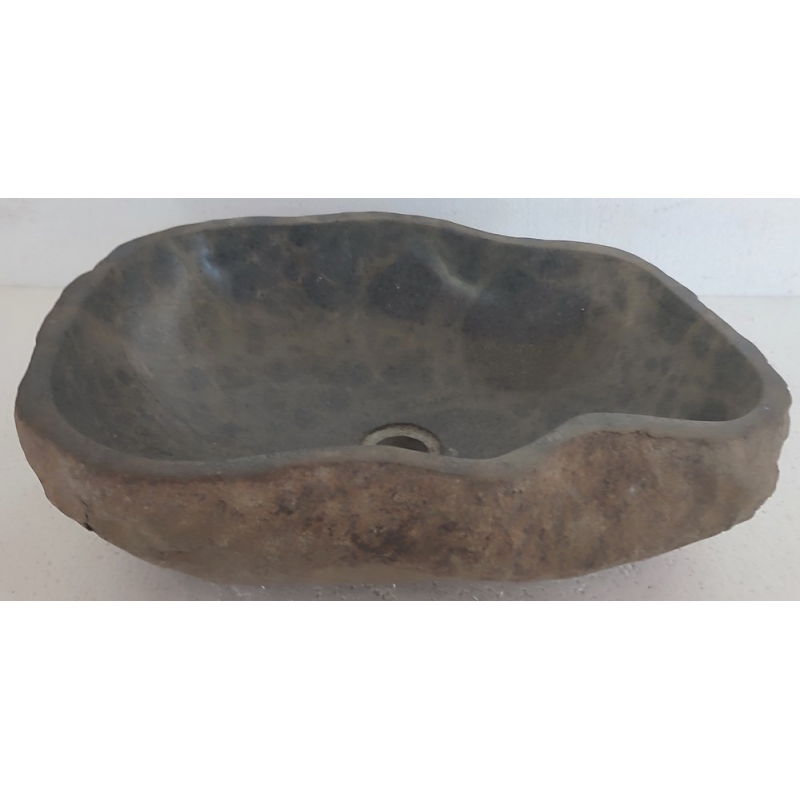 Lavabo que hay que poner de piedra natural, tallado en la masa de un guijarro de río.