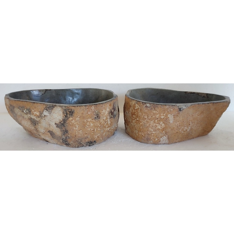 Lavabos que hay que poner de piedra natural, tallados en la misma masa de un guijarro de río.