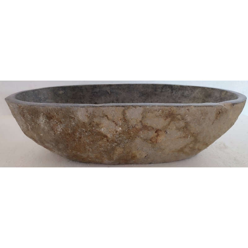 Vasque à poser en pierre naturelle, taillée dans la masse d'un galet de rivière.
