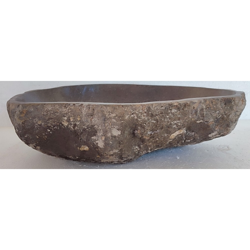 Vasque à poser en pierre naturelle, taillée dans la masse d'un galet de rivière.