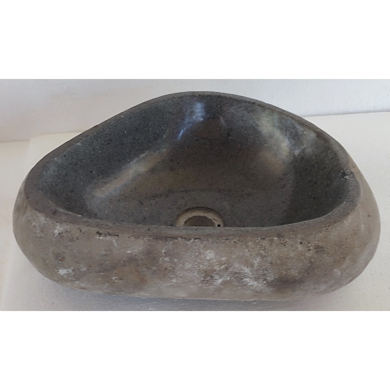 Vasque à poser en pierre naturelle, taillée dans la masse d'un galet de rivière.