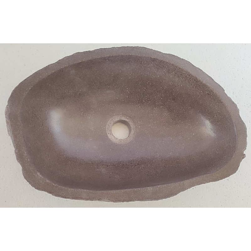 Vasque à poser en pierre naturelle, taillée dans la masse d'un galet de rivière.