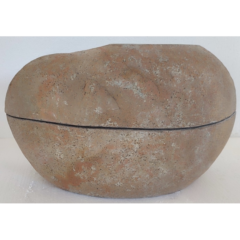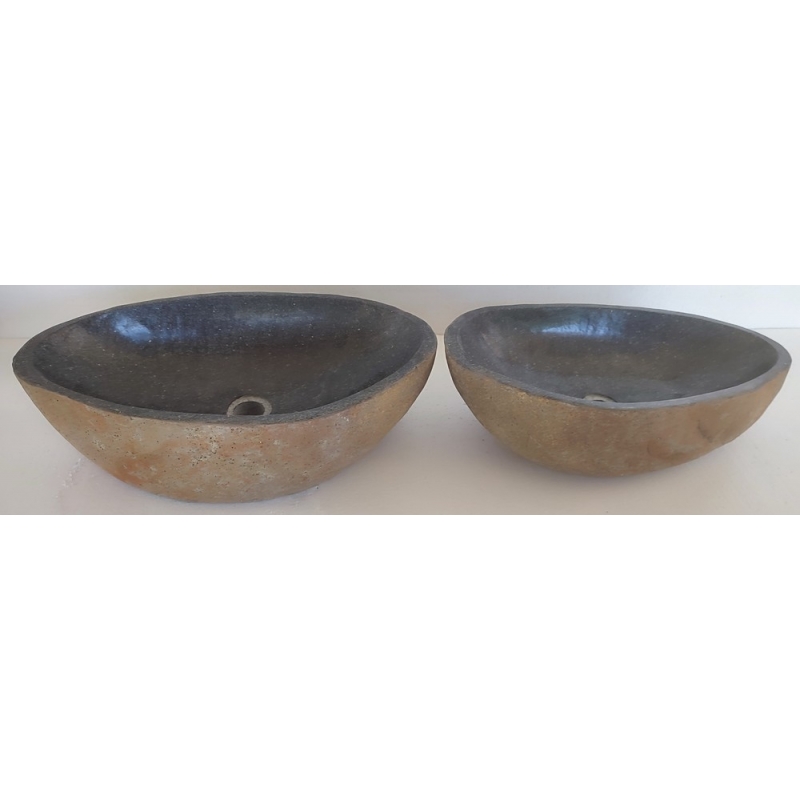 Vasques à poser en pierre naturelle, taillées dans la masse d'un galet de rivière.
