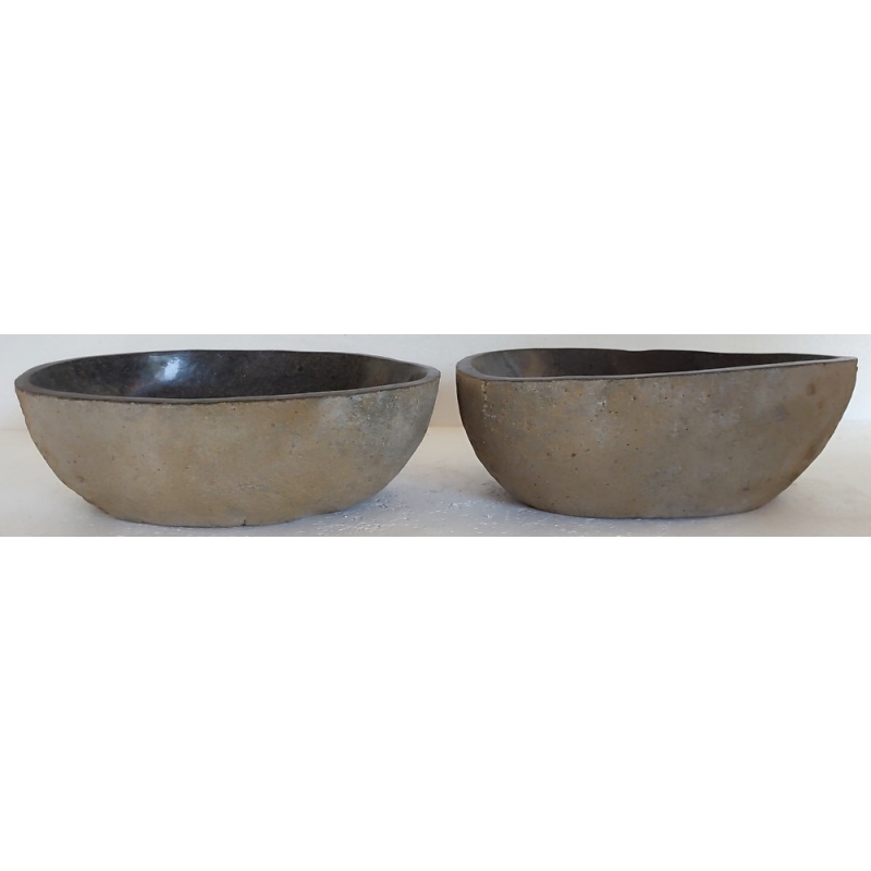 Vasques à poser en pierre naturelle, taillées dans la masse d'un galet de rivière.