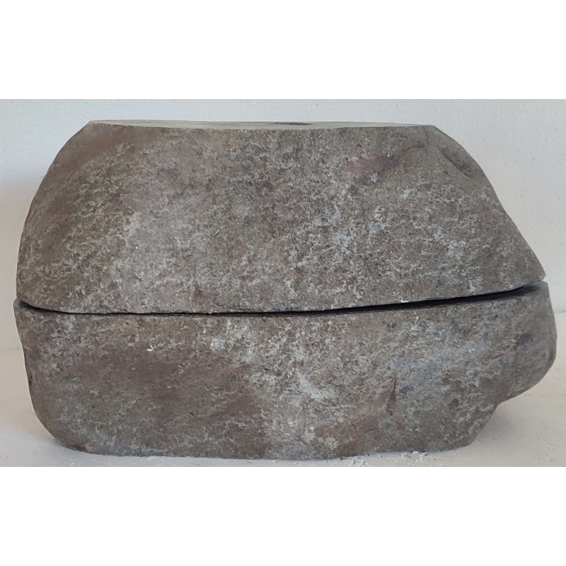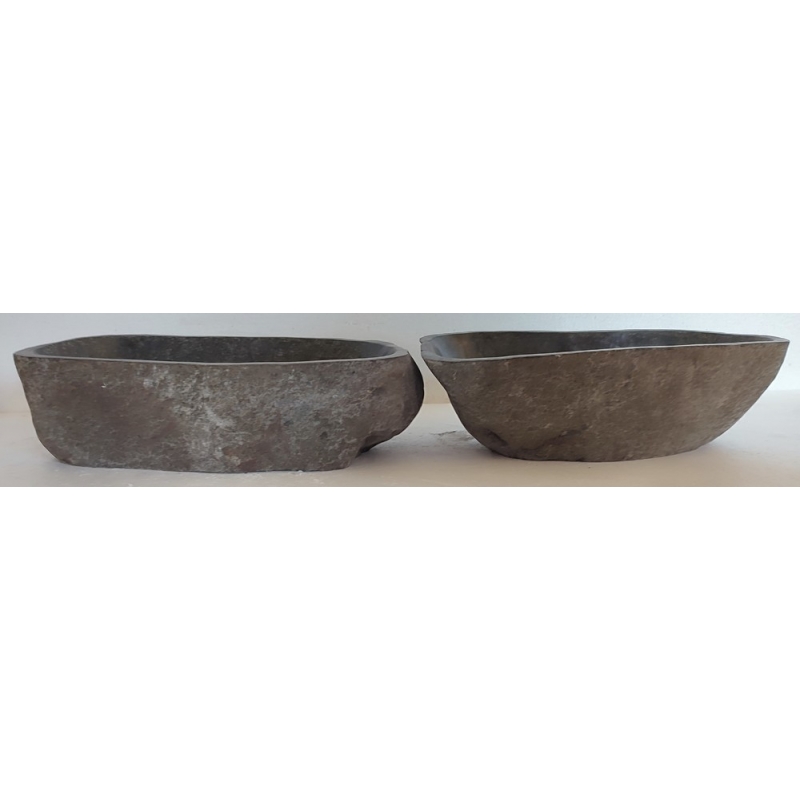 Vasques à poser en pierre naturelle, taillées dans la masse d'un galet de rivière.