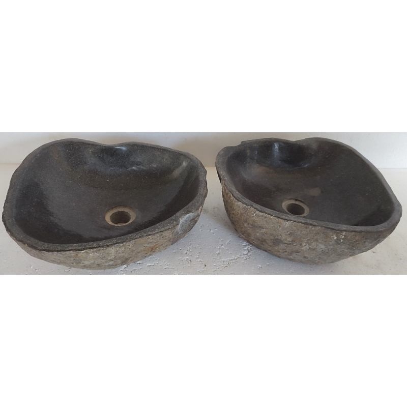 Vasques à poser en pierre naturelle, taillées dans la masse d'un galet de rivière.