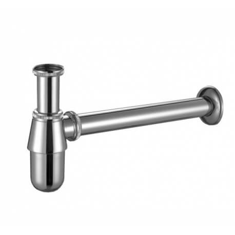 Siphon chromé, réglable en hauteur, avec rosace de finition en sortie de mur.