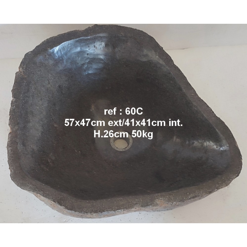 Vasque à poser en pierre naturelle, taillée dans la masse d'un galet de rivière.
